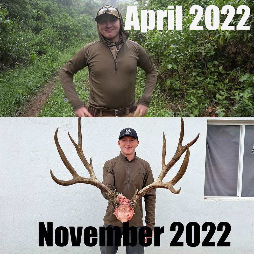 For me I came to the realization that I needed to make a change and get my act together when on my Bongo hunt in the forest of Cameroon I weighed around 190 pounds and was completely out of shape, it was kicking my but crawling around in the forest. The most ironic part was I owned a gym at the time. I also was doing several other things business wise from oil and gas construction to marketing and promotions in the outdoor industry, so I told myself I’m too busy and I dint watch what I ate. Fast forward to getting back from Cameroon I said this life is going to break me both ways financial and my health, so I cut my losses shut one company down sold my gym to a employee to just get out of it and focused on construction I started hitting the gym 6 days a week and sort apayed attention to what I ate. During that summer I also got a call from my 42-year half-brother that had just had a heart attack. My dad has also had multiple heart attacks with triple bypass surgery and the works. They both are far from being men’s health magazine cover nominees, but with that I told my self I needed to get into better shape so I kept working out and still “sort of watched what I ate” by November 1st 2022 I had dropped down to 166 pounds. These two photos are taken in April of 2022 and in November of 2022 and you can see the difference